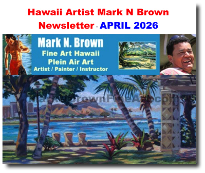 Aloha and welcome to the official site of Hawaii's Fine Art Artist, Mark N. Brown. Mark is one of Hawaii's premiere Plein Air artist and art teacher with weekly classes on the island of Oahu. His unique style of impressionist landscape paintings can be seen throughout the Hawaiian Islands in private collections, as well as numerous art galleries, fine retail shops and government facilities. View About Webpage...